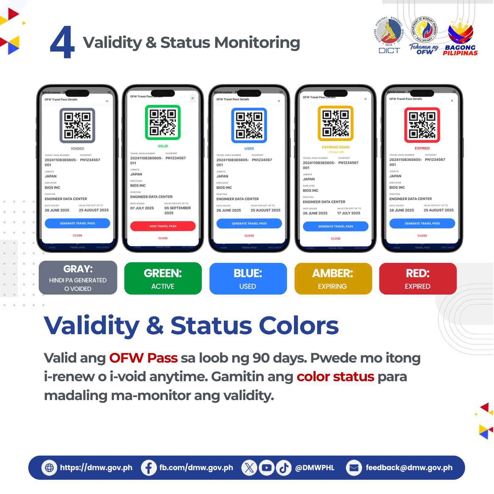 Para mas madali mong malaman ang validity ng iyong Pass, gumamit ang DMW ng malinaw na color indicators sa app: