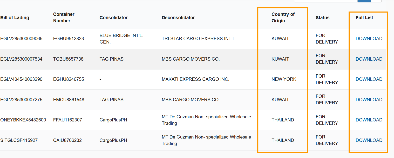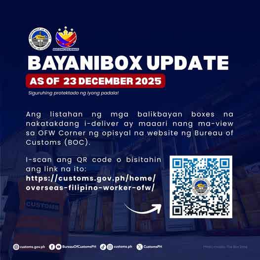 Ipinapaalam ng Bureau of Customs (BOC) na maaari nang i-view ang listahan ng mga balikbayan boxes na nakatakdang i-deliver sa OFW Corner ng kanilang opisyal na website.