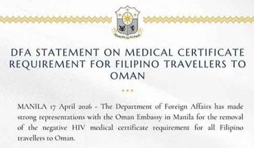 DFA Pushes for Removal of HIV Test Requirement for Filipino Travelers to Oman
